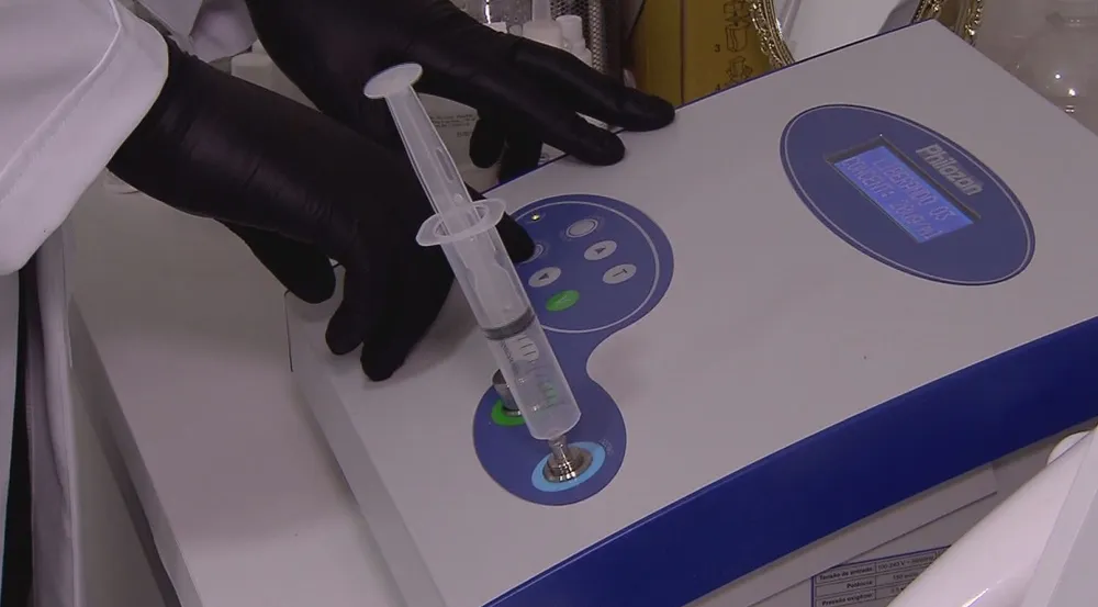 sendo aplicada por equipamento de produção de ozônio medicinal regularizado pela Agência Nacional de Vigilância Sanitária (Anvisa).